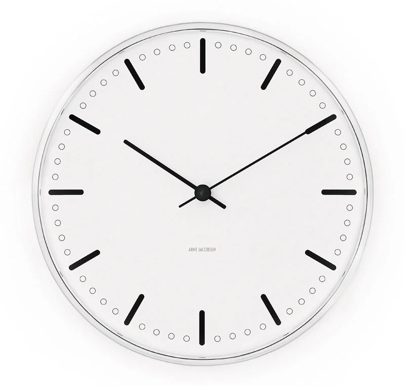 De City Hall wandklok van Arne Jacobsen Clocks is ontworpen door Arne Jacobsen in 1956 voor het stadhuis van Rødovre. Beschikbaar in verschillende afmetingen.