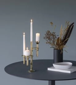 De Lind Curve combineerbare kandelaar 24K verguld van het Deense LIND DNA is een bijzonder handgemaakt interieurdetail waarbij u onderdelen in verschillende afmetingen combineert tot een geheel persoonlijke kandelaar. De combineerbare onderdelen zijn er in drie verschillende afmetingen in mat gelakt staal – Single, Double en Triple. Het Triple-deel kan geheel op zichzelf staan en vormt de basis voor uw Lind Curve kandelaar. De Single- en Double-delen moeten daarentegen met andere delen gecombineerd worden om een kandelaar te kunnen vormen. Laat uw creativiteit de vrije loop en kies zelf hoeveel u van elk onderdeel gebruikt. Stapel en combineer de onderdelen op oneindig veel verschillende manieren, zowel verticaal als horizontaal. De combineerbare kandelaar Lind Curve is gemaakt in Denemarken en is mooi voor bijvoorbeeld op de bijzettafel, ladekast of de gedekte tafel.